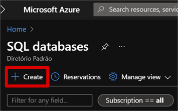 Para começar o nosso passo a passo, primeiramente vamos entrar no portal do Azure e pesquisar por SQL databases e clicar nele.