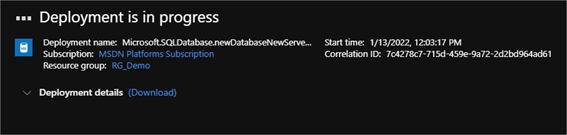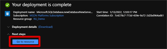 Assim que o deploy for concluído, podemos clicar na opção Go to resource para entrar na tela principal do nosso Azure SQL Database.